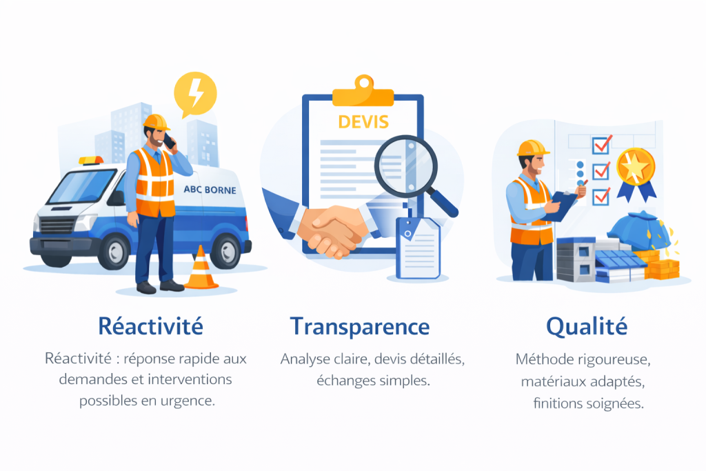 Chez ABC BORNE, chaque intervention repose sur des engagements clairs et durables.